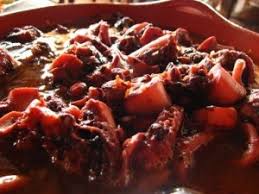 cebola ficar um pouco dourada, junta-se o vinho, o polvo escorrido, o