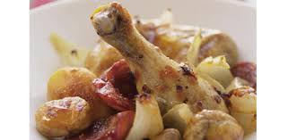 Coloque o frango numa caçoila de barro preto de Molelos juntamente com as batatas miúdas, as cebolinhas (previamente descascadas) e leve a assar em forno bastante quente durante cerca de 40 minutos.